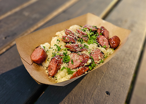 Cheesy, creamy, delicious, and ready to make your taste buds sing! Complete with UpDawg's sliced all-beef hotdog, this is the perfect side to your favorite UpDawg. Feed your inner child or your actual child!