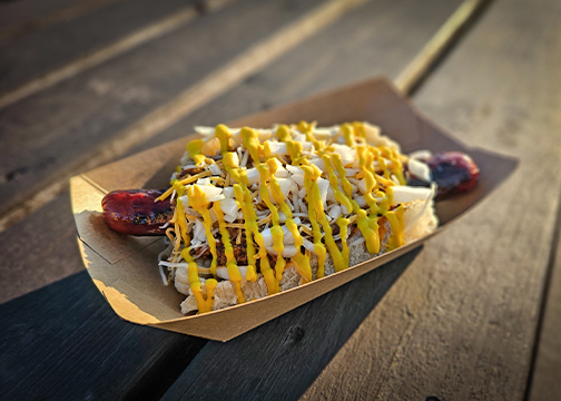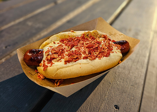 Please note that the entire UpDawg menu may not always be available on the UpDawg Jr. hotdog cart. Our compact setup offers a curated selection of our most popular items to ensure quick and efficient service. For the most up-to-date menu options, please check the posted menu at the event site. We appreciate your understanding and look forward to serving you our delicious gourmet hotdogs and sides.